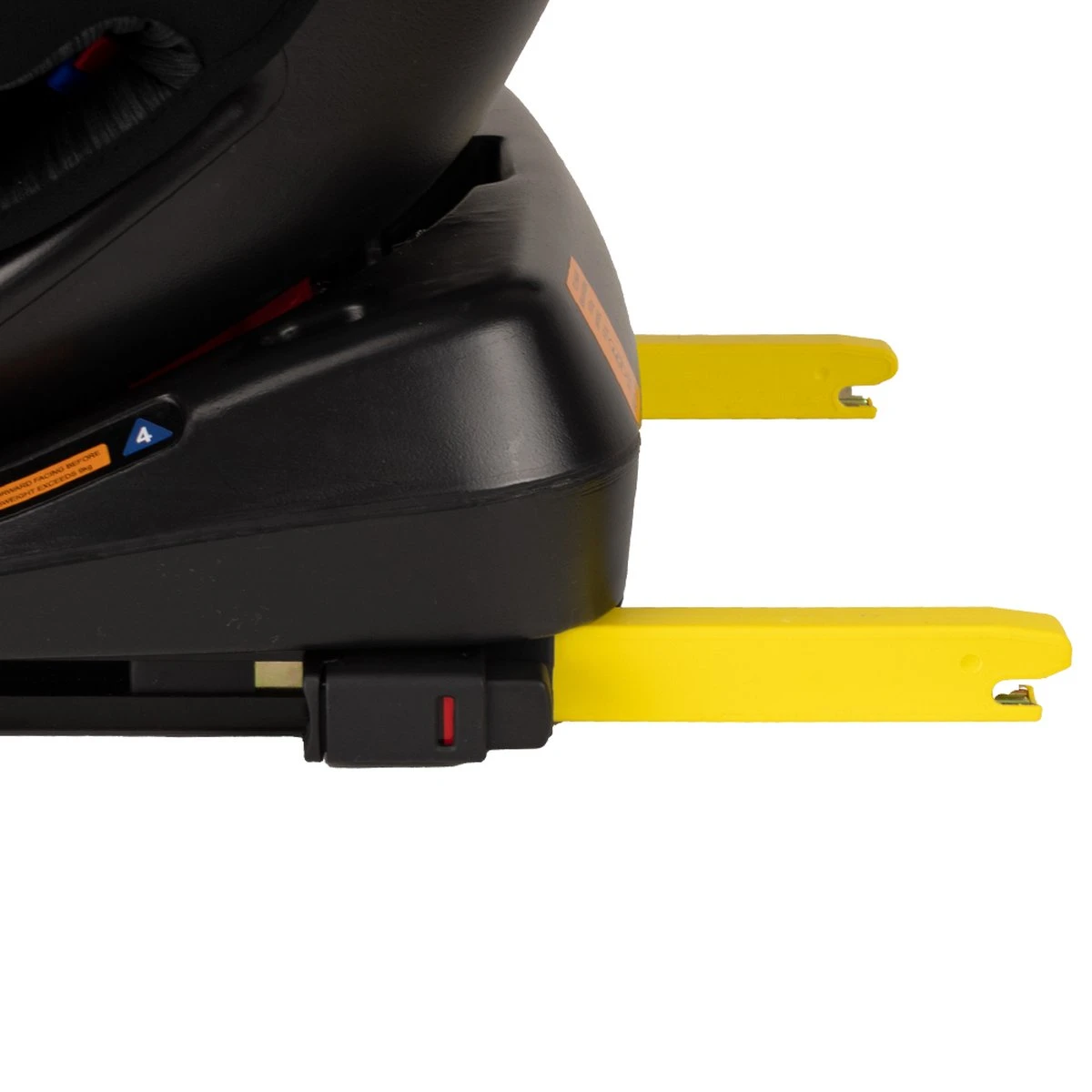 Daarnaast wordt de autostoel aan de bovenzijde bevestigd met een Top Tether. Je bevestigt de autostoel dan ook aan de bovenkant over de achterbank. De autostoel staat dan extra stabiel in de auto. Let er hierbij echter op dat de autostoel dan niet meer draaibaar is naar de deuropening, omdat deze dan vast staat. Hiervoor dien je de Top Tether los te maken.