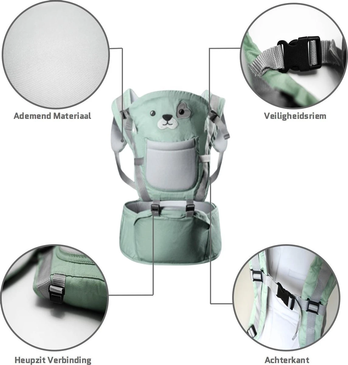 Veilig: De sluiting van het heupzitje bestaat uit klittenband en verstelbaar premium gespen voor extra veiligheid
