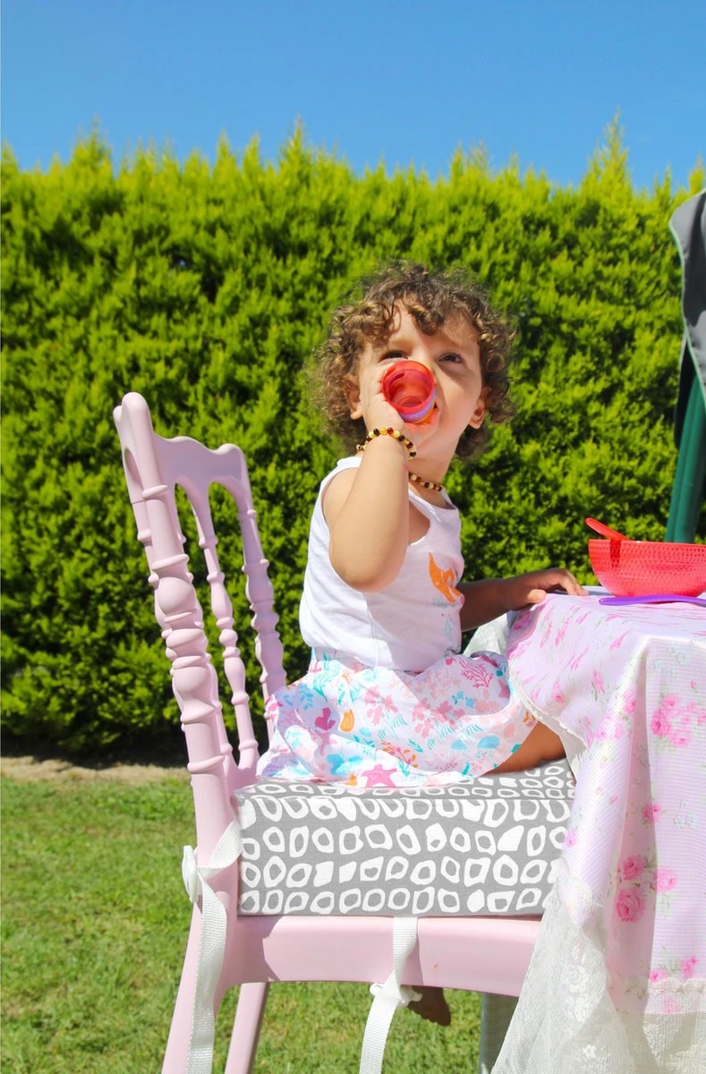 Je kleintje wordt al groot maar zijn kinderstoel groeit niet mee. Dan is dit een ideale tussen oplossing de stoelverhoger van het merk BabyJem. De stoelverhoger is makkelijk te plaatsen en weer er af te halen mocht er op gemorst worden geen probleem de stoelverhoger is makkelijk schoon te maken. De stoelverhoger ziet er ook nog eens mooi uit door de sterren print en zit comfortabel.