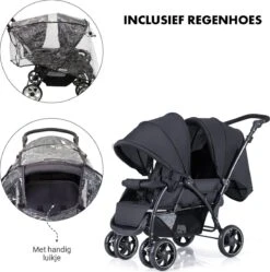 Ding Vivo Wandelwagen – Beige/Rose – Inklapbare Buggy – Inclusief Boodschappenmandje En Zonnekap