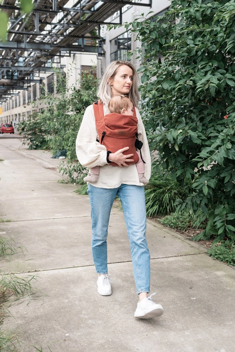 De stof is gemaakt van 100% linnen dus heerlijk baby-zacht en luchtig in de zomer. De draagzak is geschikt vanaf dag een tot ongeveer broekmaat 86. Je draagt deze babydrager op buik, heup of rug en is zonder hulp om te doen. Deze babydrager is perfect voor iedereen die houdt van gemakkelijk en snel: Click & Go!