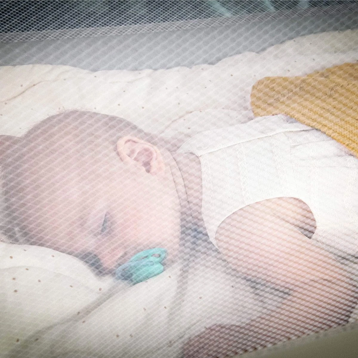 Veilig en handig: Zacht gaas aan de zijkant zorgt voor veiligheid en genoeg beluchting in het bed. Het campingbedje heeft 6 poten voor optimale stabiliteit