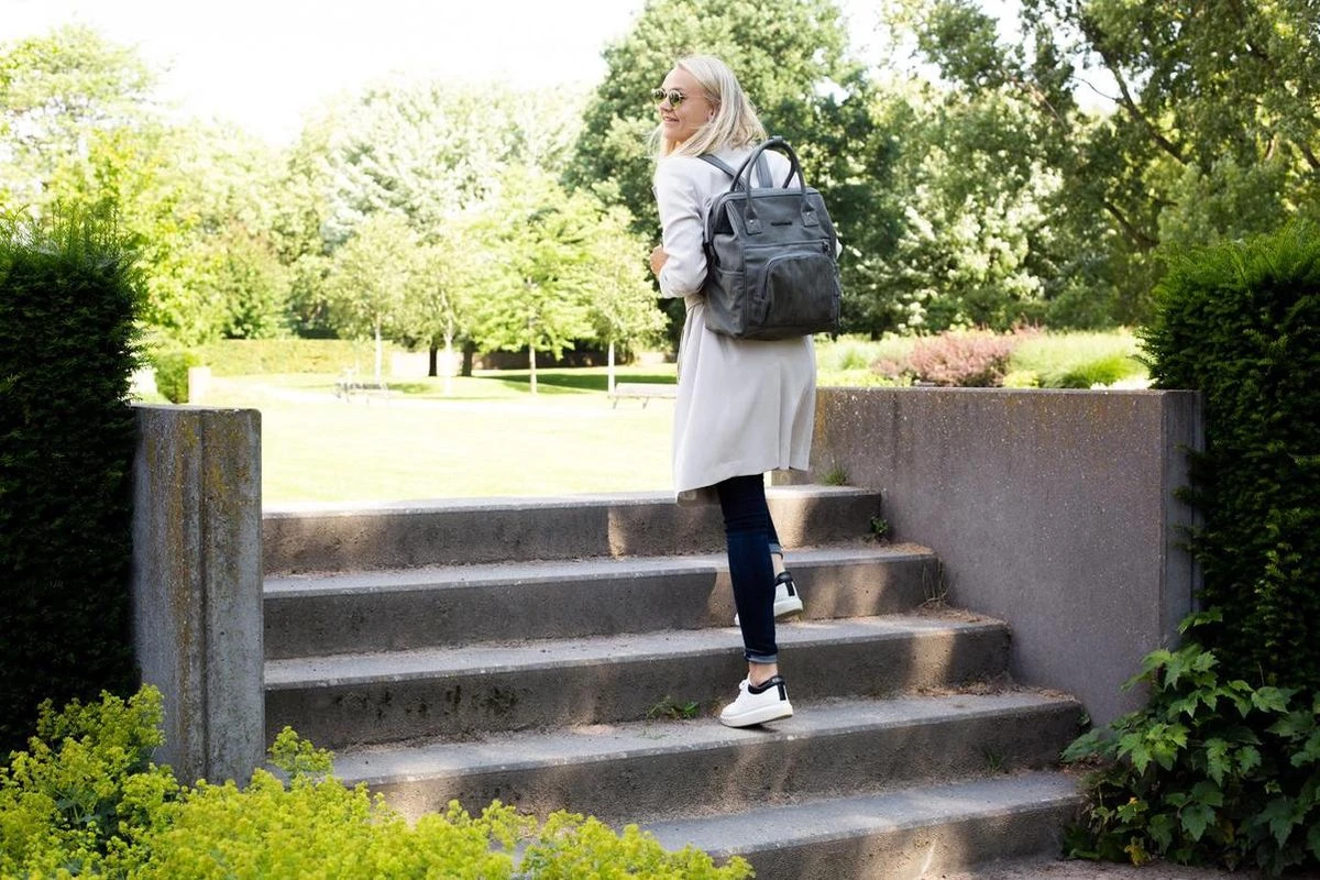 Stoer, stijlvol en vooral functioneel, dat is de verzorgingsrugtas Riga. In deze ruime rugtas met veel vakken aan de binnen- en buitenkant kun je met gemak al je verzorgingsspullen kwijt. Binnenin het hoofdvak bevinden zich 7 handige opbergvakken, een vakje met rits en een verzorgingsmatje. Het hoofdvak is afsluitbaar met een rits en wanneer je de tas opent, blijft deze open staan door de zogenaamde “dokterstassluiting”. De tas heeft twee extra opbergvakken aan de voorkant, en twee handige steekvakken aan de zijkant. De twee banden aan de achterkant zorgen ervoor dat deze rugtas comfortabel gedragen kan worden en met de bijgeleverde stroller straps, bevestig je de tas eenvoudig aan de kinderwagen. Kortom: van alle gemakken voorzien!