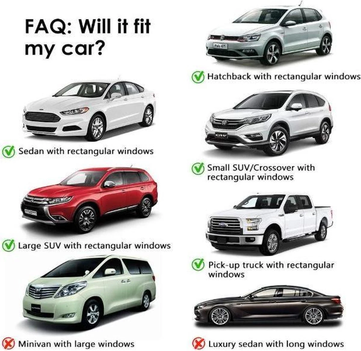 Voldoe aan de behoeften van de meeste klanten – Het uitbreidbare zonnevizier past op 95% van de autoruiten. Lengte van het venster (min-max): 58 cm-108 cm/ 23 “-42.5”, hoogte van het venster (min-max): 44 cm-52 cm/ 17.5 “-20.5”. Voordat u het zonnevizier voor uw raam bestelt, meet u de grootte van de ramen en zorgt u ervoor dat ze geschikt zijn voor uw voertuig (als de lengte van het raam 105 cm overschrijdt, mag de hoogte niet meer dan 45 cm bedragen).