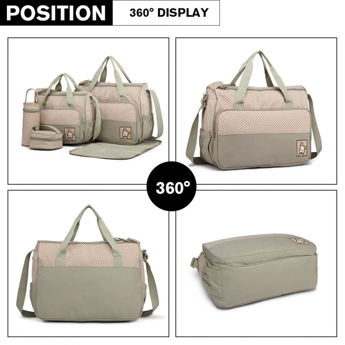 Inhoud Verpakking: 2x Luiertas, maaltijdtasje, flessenhouder en verschoonmatras