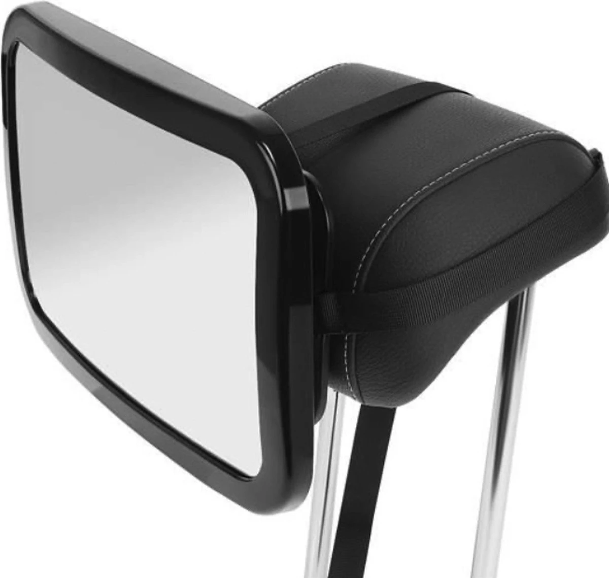 4 STRIPEN – in vergelijking met de concurrentie heeft ONS MODEL 4 verticaal en horizontaal gemonteerde strepen, die de hoofdsteun stevig vasthouden en niet losraken; de spiegel kan er niet afglijden en op het kind vallen! De banden zijn bevestigd met gespen en kunnen bovendien worden versteld, zodat ze aan elk model hoofdsteun passen, ongeacht het merk en de grootte van de auto. De basis, die aan de hoofdsteun is bevestigd, heeft een antislip oppervlak, dat bovendien voorkomt dat de spiegel verschuift.